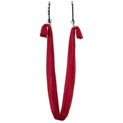 The length of the aerial yoga hammock makes it perfect for attaching to the ceiling. It can be attached using the ceiling anchors supplied for concrete ceilings. Attaching it to 2 ceiling anchors allows you to perform considerably more exercises. The version without ceiling anchors can be hung in an individual way. For example, you could use existing ceiling anchors or poles which can bear the load. The hammock can be washed at 30°C, making it very hygienic. Height adjustable using the straps.