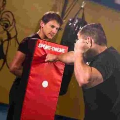 The punch pad has 2 handles on the back, allowing your partner to firmly hold on to the pad, so you can train effectively. Ideally suited to kick-boxing and punching training. The white target point in the middle of the punch pad is another practical feature, allowing you to improve on your accuracy.